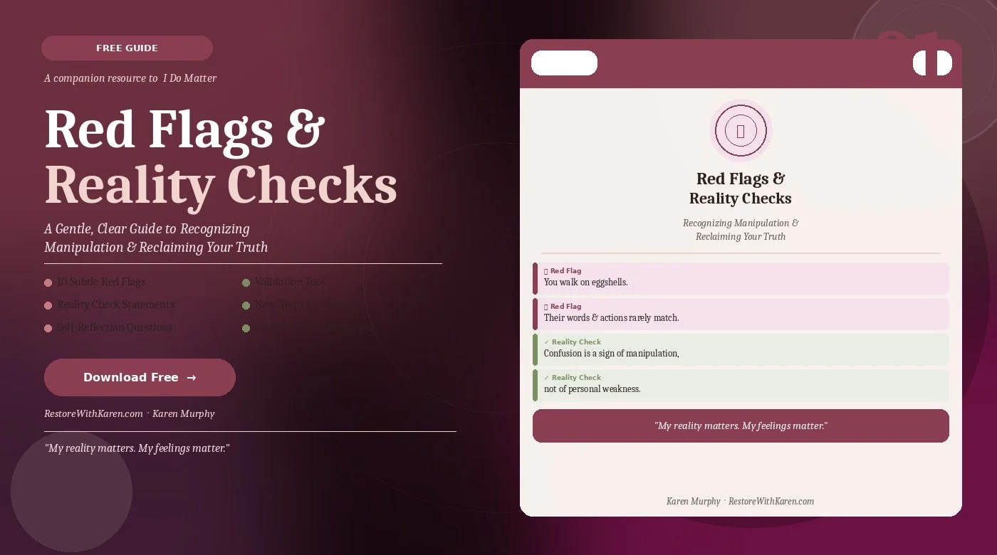 Start your healing journey now by grabbing the Red Flags & Reality Checks list to help you begin to see through the fog.